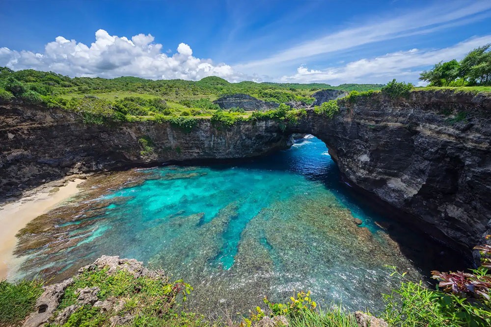 包括Kelingking海灘, Broken Beach(破碎海灘),天使的Billabong),